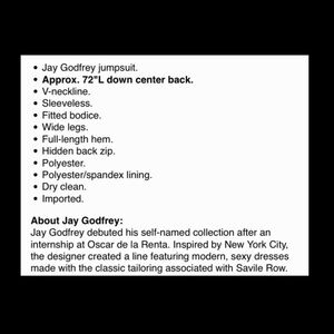 Jay Godfrey V Neck Sleeveless Wide Leg Jumpsuit.