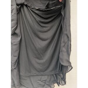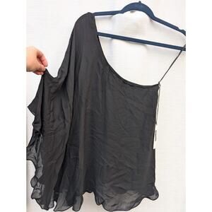 Jay Godfrey Women's One Shoulder 100% Silk Blouse Sz L Flowy Whimsigoth Witchy. Tops is new with tags. The top layer is sheer, but it is lined. It measures around 18" pit to pit so I would say it runs on the smaller side. The lining is a little stretchy. From shoulder to bottom measures 28".