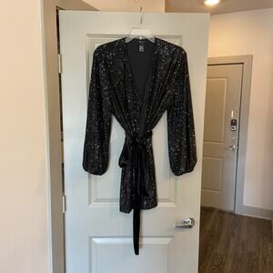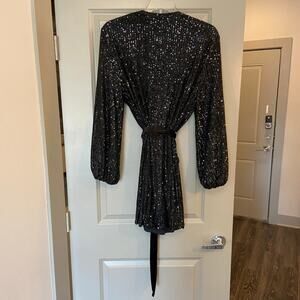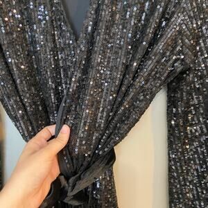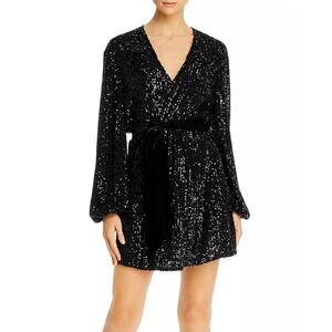 Jay Godfrey Revolve Women's Size 8 Black Sequined Polly Mini Wrap Dress