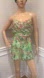 Green floral printed chiffon (100% Polyester). Romper. Strapless. Sweetheart neckline. Hidden center back zipper closure. Fully lined. Inseam: 3". 34" from shoulder to hemline. Imported.