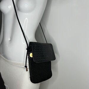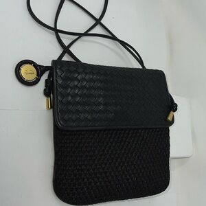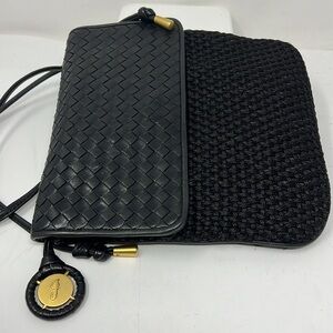 This is a beautiful Jay Herbert by Sharif Crossbody Shoulder Intrecciato Leather and Knit Mesh Bag. Can be worn as crossbody or shoulder or even as a belt bag by adjusting the 27”strap by pulling and knotting at the bottom. Leather and matte goldtone fob. Back slip in full size compartment. Snap open interior is fully lined with a zip pocket and authenticity shank. No odors. No stains. No tears.