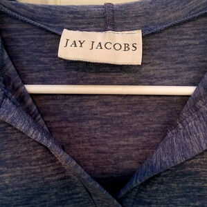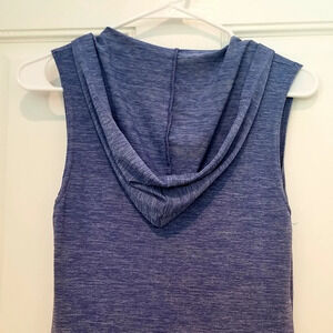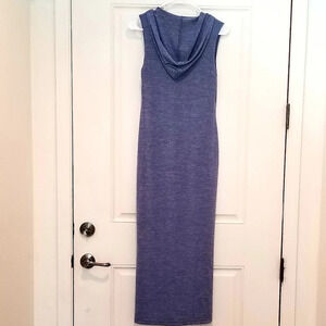 Try out this Jay Jacob's hooded blue maxi dress with double slits on both sides of dress. The slit comes up to top of calf. With light weight stretchy material the dress is perfect for casual attire. Dress has not been worn but has one very small snag on middle front of dress.