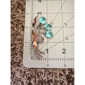 Jay Kel rose gold vermeil sterling silver aqua blue glass rhinestones brooch pin