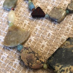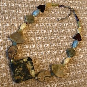 Hallmark Desert Rose Trading Mine Finds by Jay King and trademark hanging heart- multi natural stones may include agate jasper quartz laborite rhodolite citrine -all different shapes and sizes excellent condition-untarnished and shiny sterling silver 925 marked clasp and extender chain -sale includes necklace and matching bracelet