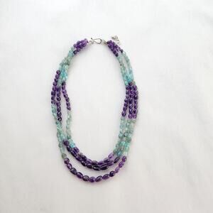 Jay King 3 Strand Necklace 18" Apatite, Amethyst New Sterling Silver 925