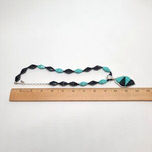 Jay King DRT Sterling Silver Blue Turquoise Onyx Inlay Pendant Beaded Necklace