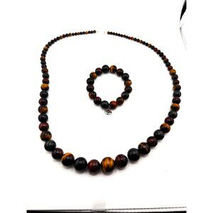 Jay King DTR 925 Sterling Silver Tigers Eye Beaded Necklace & Bracelet Set