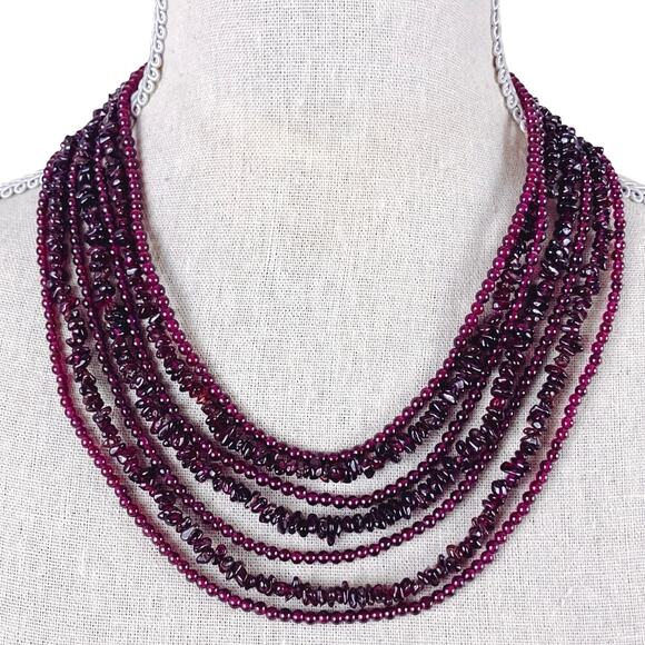 Jay King DTR Garnet Gemstone Multi Strand Sterling Silver Beaded Necklace Signed