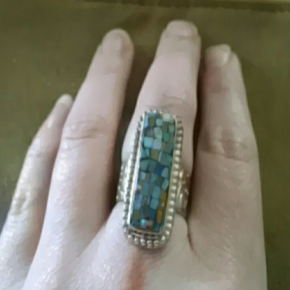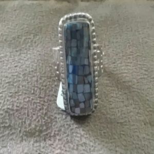 Inlaid tiger eye and micro opal form a beautiful mosaic in this elongating and flattering ring. Jay King size 6.