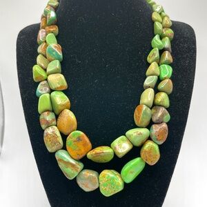 Jay King DTR Signed 925 Vintage Mojave Green Turquoise 2 Strand Necklace