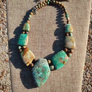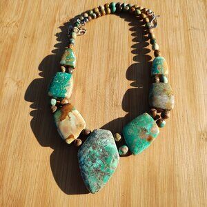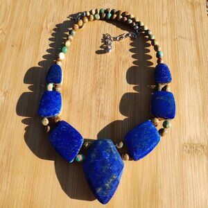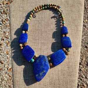 you have the choice of the the vibrant blue color of the lapis or the green turquoise with lots of matrix, two necklaces in one.