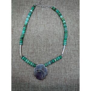 Jay King Green Gemstone & Sterling Silver Beaded Necklace. Excellent Preowned Condition!