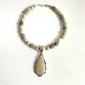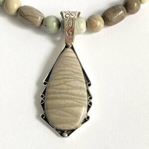 Jay King Mine Finds Necklace Gray Jasper Large Pendant Sterling Silver Beaded