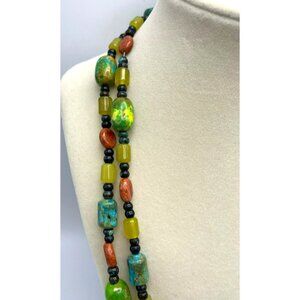 Jay King Mine Finds Southwest Necklace Green Blue Turquoise Red Coral Serpentine
