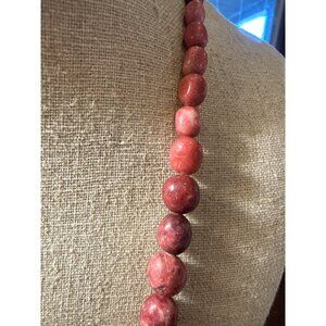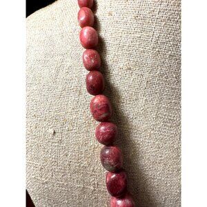 Offered is a stunning Jay King Mine Finds beaded necklace featuring natural Norwegian Thulite, a rare pink variety of zoisite. The polished nugget-style beads display rich raspberry to rose-pink tones with soft white mottling — a natural stone look that Jay King is known for sourcing directly from mines worldwide.