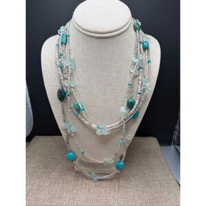 Jay King Multi Strand Heishi Bead Turquoise and Quartz Necklace Gemstones