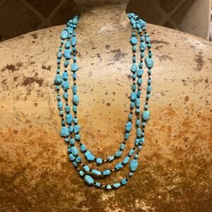 Jay King Necklace Sterling Silver, Turquoise & Black Spinel Three Strand DTR