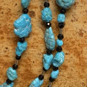 The Jay King Necklace is a stunning piece of fine jewelry that features turquoise, black spinel stones and sterling silver cylinder beads. This statement necklace has an asymmetrical main stone shape and a layered, beaded style. The necklace is adjustable in length and is signed by the designer. Perfect for special occasions like engagements, weddings, birthdays, and anniversaries, this necklace is a beautiful representation of art and beauty. Made by Mine Finds by Jay King, this necklace is a unique and elegant addition to any jewelry collection.