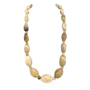 The Jay King Necklace features natural yellow Jasper with brown veins graduating beads . The necklace is signed by the brand Mine Finds by Jay King and has a hook closure. With a length of 19 inches plus a 3-inch extender, this statement piece is perfect for various occasions such as engagements, weddings, anniversaries, birthdays, and more. The necklace embodies beauty and nature themes, making it a unique and eye-catching accessory for any jewelry collection. Marked DTR, China and 925.