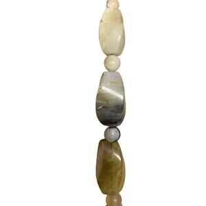Statement larger stones resemble faceted helix twisted stones. In between each is a round jasper bead.