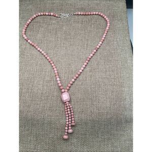 Jay King Pink Beaded Tassel Necklace with Faceted Focal Bead & Silver Hook Clasp