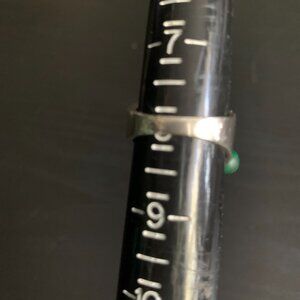 Jay King sterling ring with curved row of genuine Malachite beads. Please note these beads are a darker shade than the camera shows. Excellent pre-owned condition showing almost no wear. A full size 8 on the jeweler's mandrel. Hallmarked on the inner band. C1451