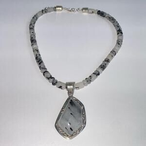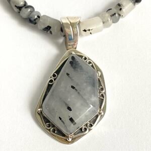 Jay King Black Rutilated Quartz Necklace Mine Finds DRT Desert Rose Trading Sterling Silver Large Pendant