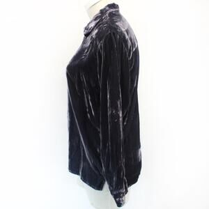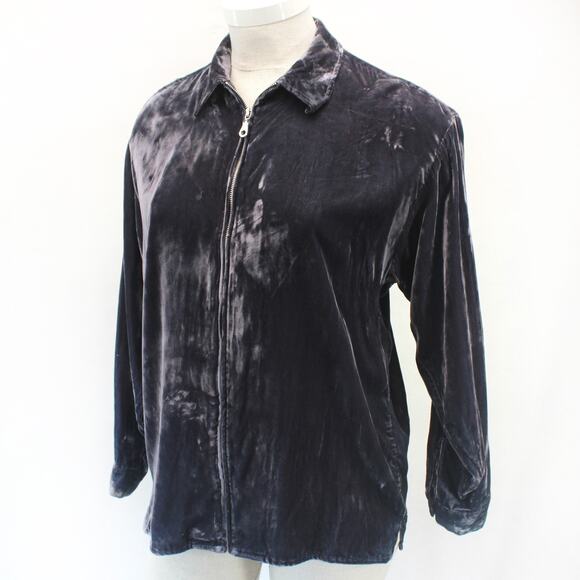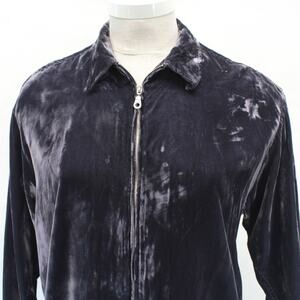 Jay Y. Ko Vtg Studio Rayon Velvet Navy Jacket Blouse Top Zip Collared Casual XL