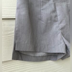 Features: fun chic high waisted shorts, soft gray color, shorter length in the front and longer in the back? Back zip closure