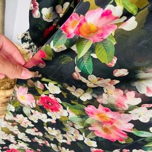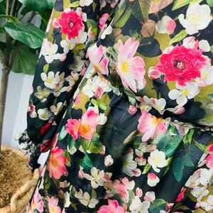 JayGodFrey Black Sheer Floral Smocked Sleeve Smocked Chiffon Style Dress