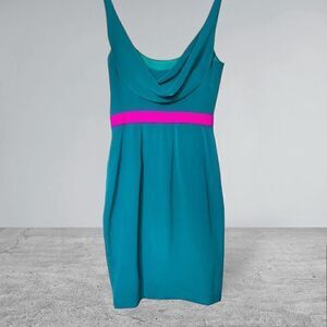 Jay Godfrey Silk Color Block Teal Hot pink Cowl Back Sheath Dress Size 2