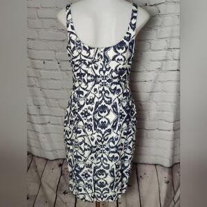 JayGodfrey V-Neck Midi Length Sheath Lined Blue & White Dress Size 4