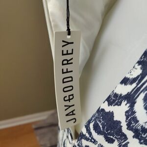 This beautiful Jay Godfrey midi length dress is perfect for any occasion! The dress features a V-neckline, sleeveless strappy sleeves, and a zip closure. Its colorful batik pattern and blue & white color make it a great addition to your wardrobe.