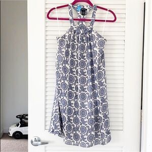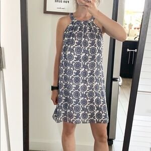 Jay Godfrey 100% silk dress. All over white & blue nautical-Esque pattern. Cutout back detail. Back hidden zipper and hidden neck clasp. Worn 1x and dry cleaned. Such a great and easy summer dress to throw on! Excellent condition.
