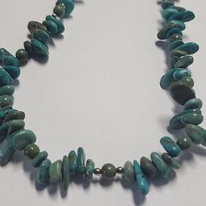Elegant turquoise beaded necklace perfect for adding a pop of color to any outfit. Ideal for casual or formal occasions.
