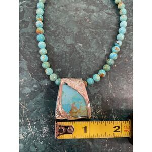 ✨ Turquoise gemstone beads with natural matrix strung along the necklace.