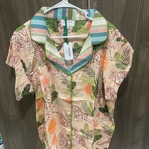 This 100% cotton fabric is the foundation for these two-piece, ruffled capri pajamas. Roomy cut, capri length pants with an elastic waistband, coordinating drawstring and POCKETS, paired with a cap-sleeve top bring a fun style and comfort to your pajama game.