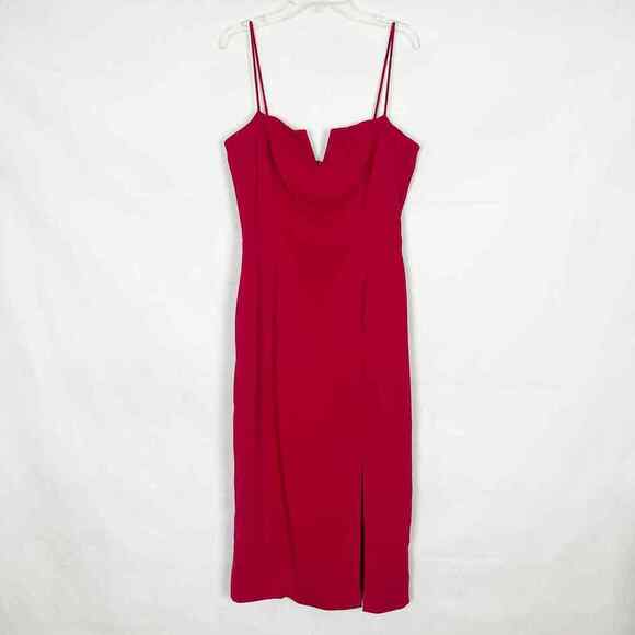 Jaygodfray Daisy true red dress. Spaghetti straps. V-neck. Side slit. Hidden zipper in back. Lined. In good used condition. No stains, tears or holes.