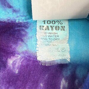 Jayli Batik Tie Dye Button Up Shirt Womens L Blue Purple Rayon Boho Hippie