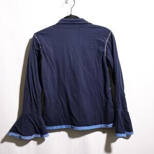 Jayli Blue Jacket Bell Sleeve Floral Embroidered Womens M Cotton Hippie Boho Zip