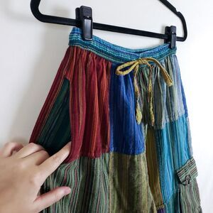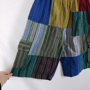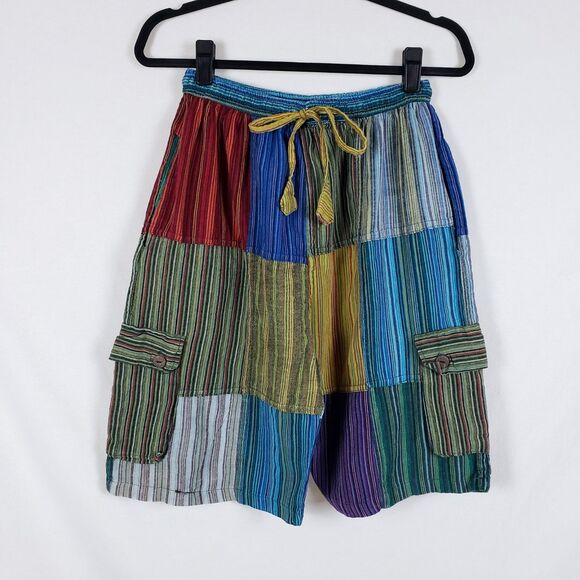 Jayli Hippie Short Mens L Festival Patchwork Striped Cargo Handmade Nepal