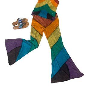 Jayli Rainbow Patchwork Flare Belbottom Pants NWT