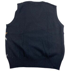 Jaymar Sport Mens Sweater Vest L Lambswool Argyle V-Neck Black Knit Classic