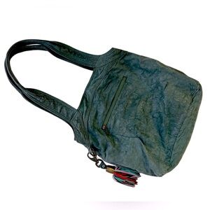 Jazmin Chebar Chic Green Shoulder Slouchy Bag Colorful Tassels boho Lagenlook