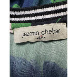Jazmin Chebar Floral Peplum Asymmetrical Top Medium Green Luxury Sporty Preppy