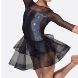 Contemporary Dance Costume, Black holographic GRAVITATE, Adult Medium