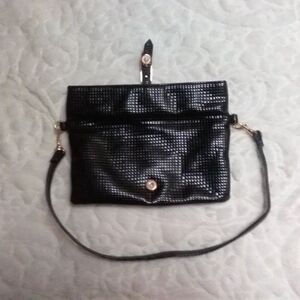 Jazzd Convertible Foldover Purse Clutch Wristlet Black Textured Vegan Leather