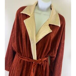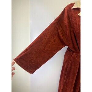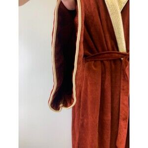 JcPenney Misses Robe Vintage Velour Quilted Collar Brown Rust Tie Belt Womens Large.