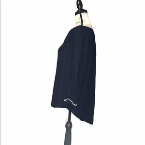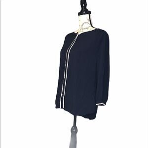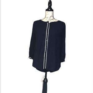 Jcp women’s navy blue button down blouse white pinstripes 3/4 sleeves Great for office work/career/business or Dressdown P1A244