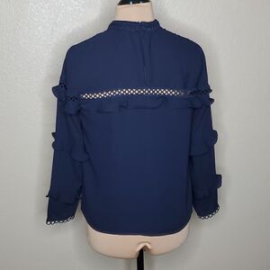 J.crew 6 Navy Blue Tiered Ruffle Top long sleeve with Scalloped Lace Trim in excellent condition,